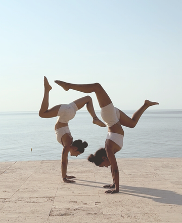 La fuerza se une al juego. Piensa en handstands y grandes sonrisas. El yoga la encontró en 2016, Ashtanga y Rocket®Yoga han sido su poderoso camino.